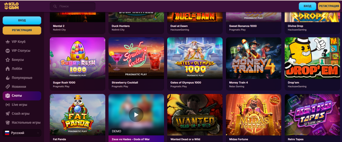 Открывая Килограм официальный сайт, пользователи увидят азартную платформу, которая наполнена интересными и захватывающими играми. Онлайн казино имеет интуитивно-понятный интерфейс, что позволяет игрокам быстро переключаться между следующими разделами: